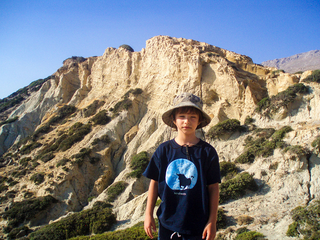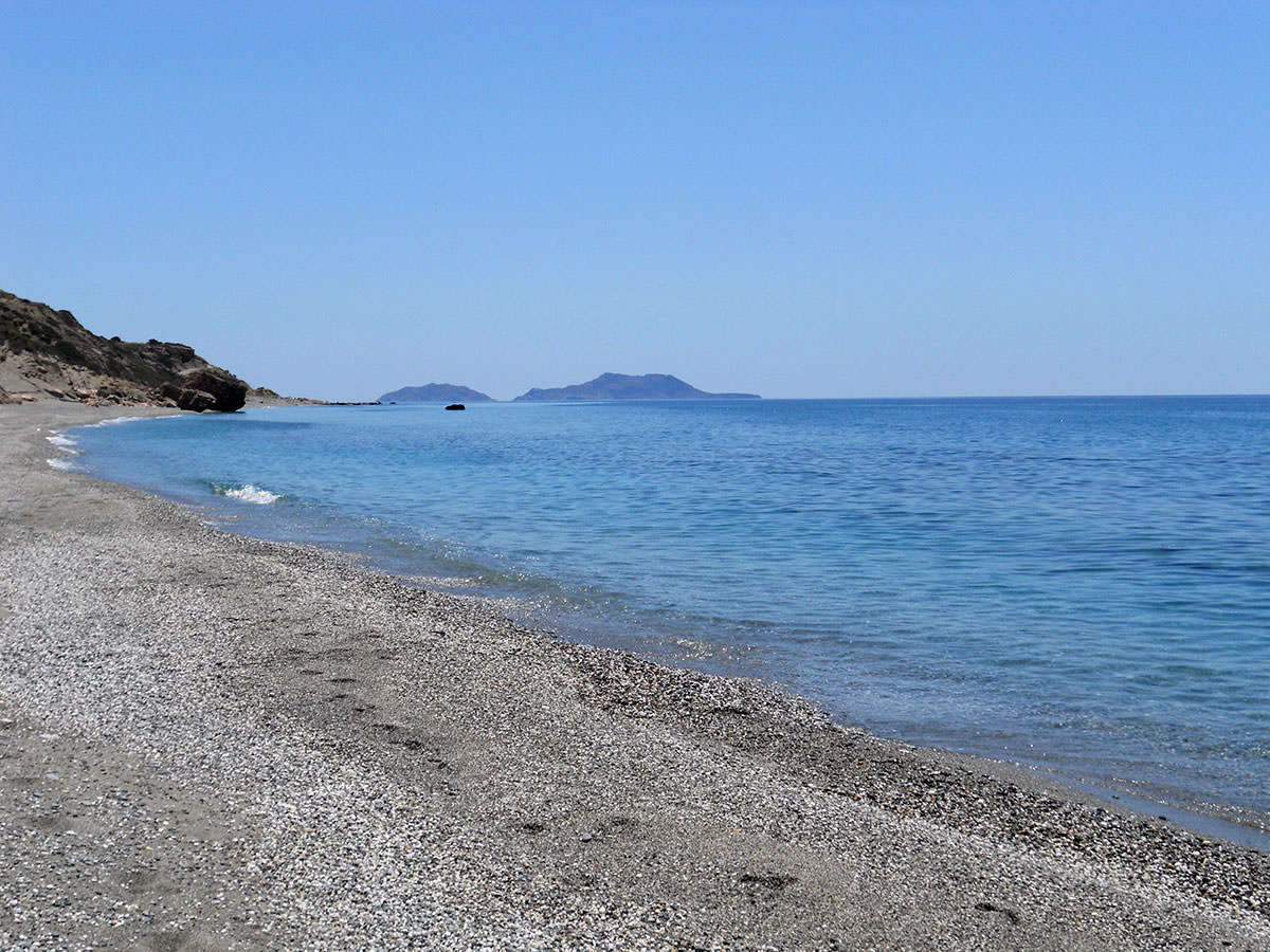 Agia Paraskevi was rebuilt approximately ten years ago on the side of Mount Asitherotas and above the long sandy beach of Triopetra which takes its name (Three Stones) from the three large rocks at the end of the beach.